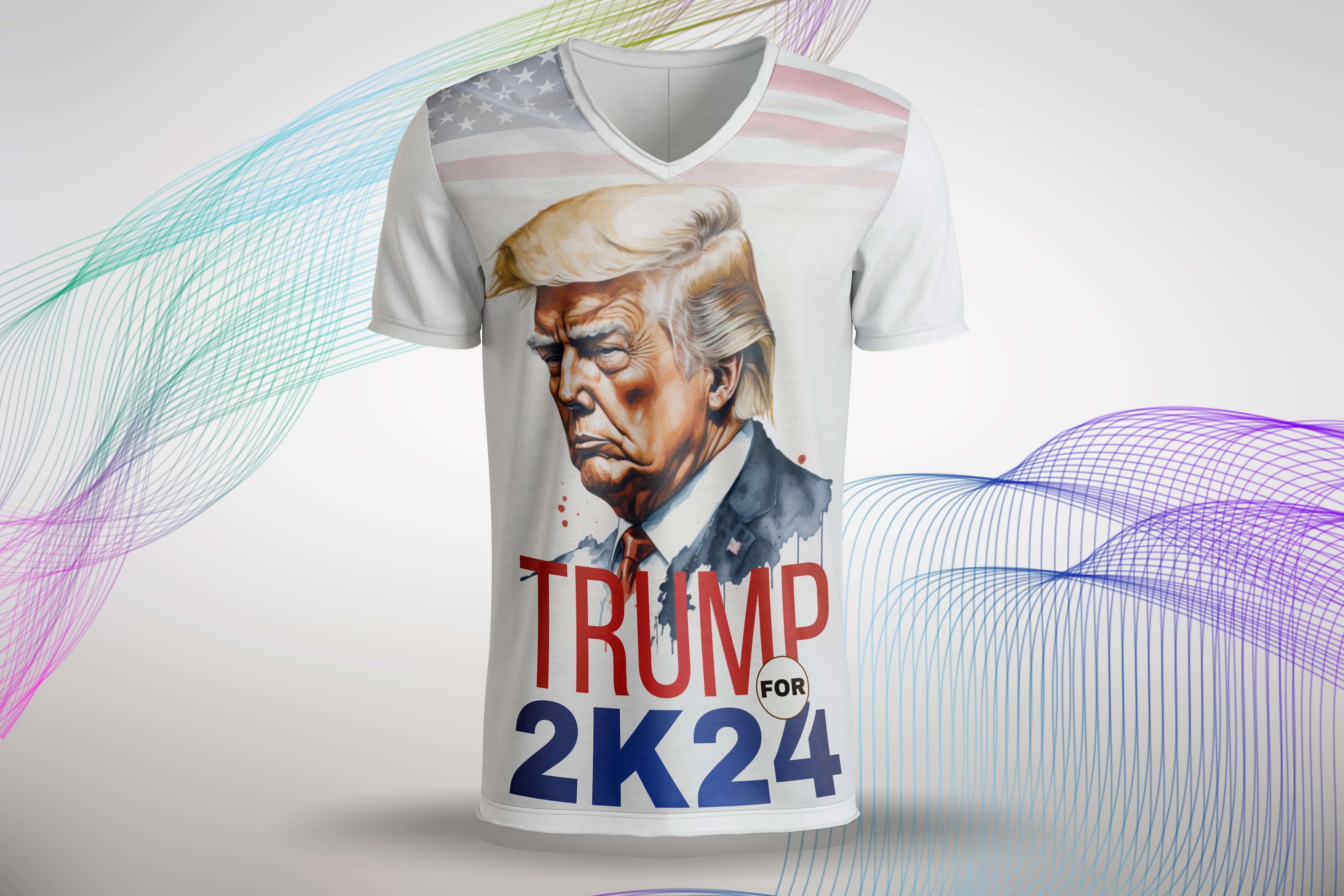 Stand with Trump: Bold, patriotic design showcasing support for Trump Republicans in 2024. Featuring vibrant graphics and iconic elements for a strong statement of allegiance.
