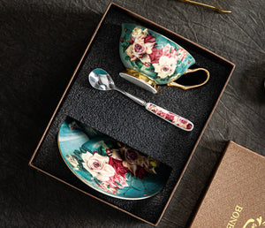 Rose Royal Ceramic Cups, Elegant Flower Ceramic Coffee Cups, Afternoon Bone China Porcelain Tea Cup Set, Unique Tea Cups and Saucers in Gift Box