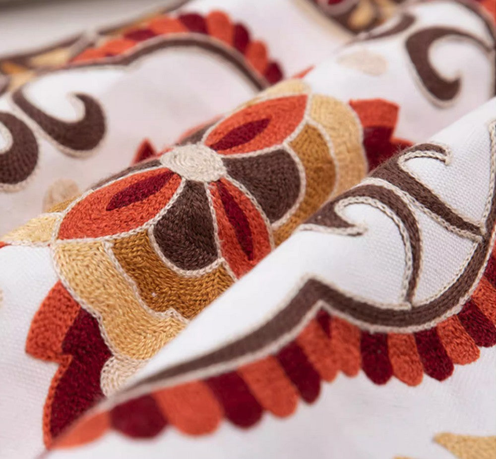 These Pillow Covers are made with cotton cloth on the front and back. Single-sided embroidery. and the back is pure white cotton cloth.
