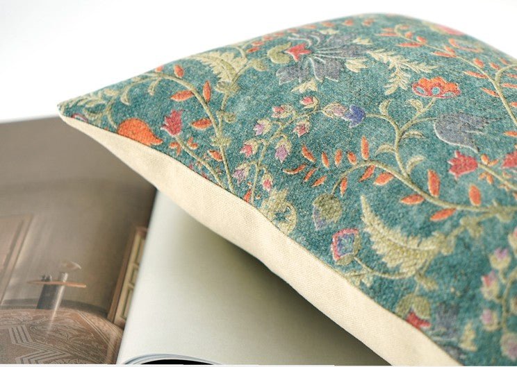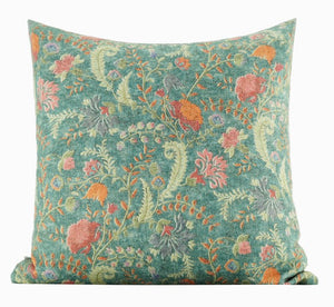 Garden Flowers Pattern Decorative Throw Pillows. Geomeric Contemporary Square Modern Throw Pillows for Couch. Large Green Throw Pillow for Interior Design