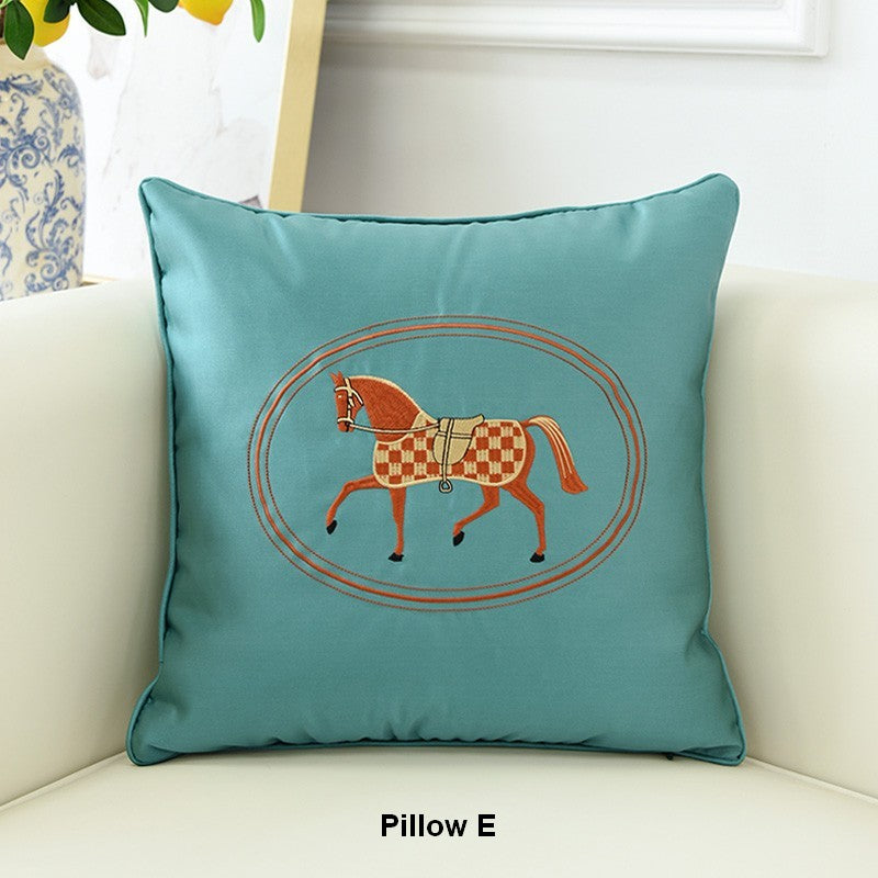 Modern Decorative Throw Pillows, Horse Decorative Throw Pillows for Couch, Embroider Horse Pillow Covers, Modern Sofa Decorative Pillows