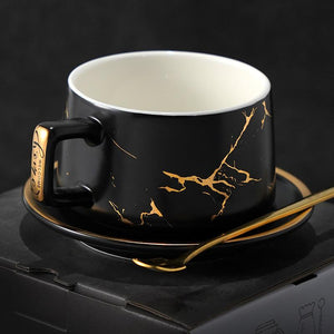 Large Tea Cup, White Coffee Cup, Black Coffee Mug, Ceramic Cup, Coffee Cup and Saucer Set