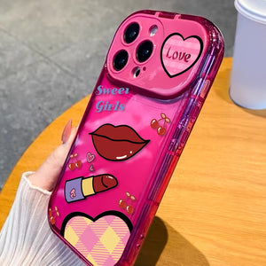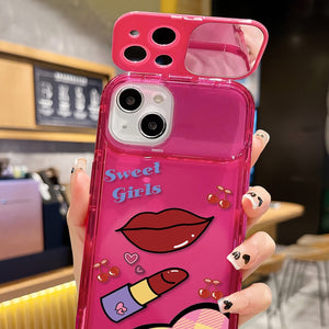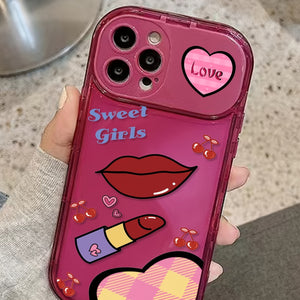 1pc Phone Case With Lips & Lipstick Pattern, Cartoon Phone Case With Mirror