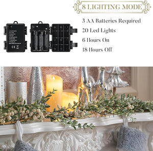 The timer function allows you to set the lights to turn on and off automatically, ensuring your decorations are always bright when needed. Whether draped along a mantel, staircase railing, or used as a festive table centerpiece, this garland brings the beauty of winter indoors.